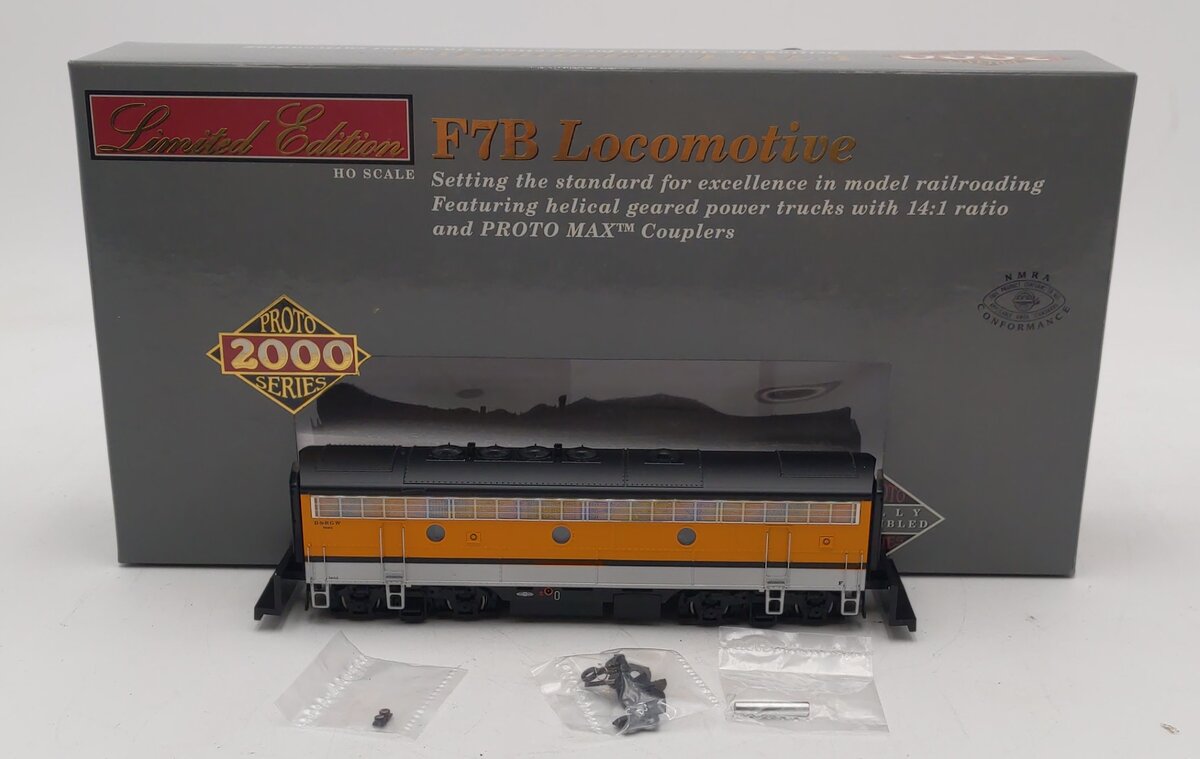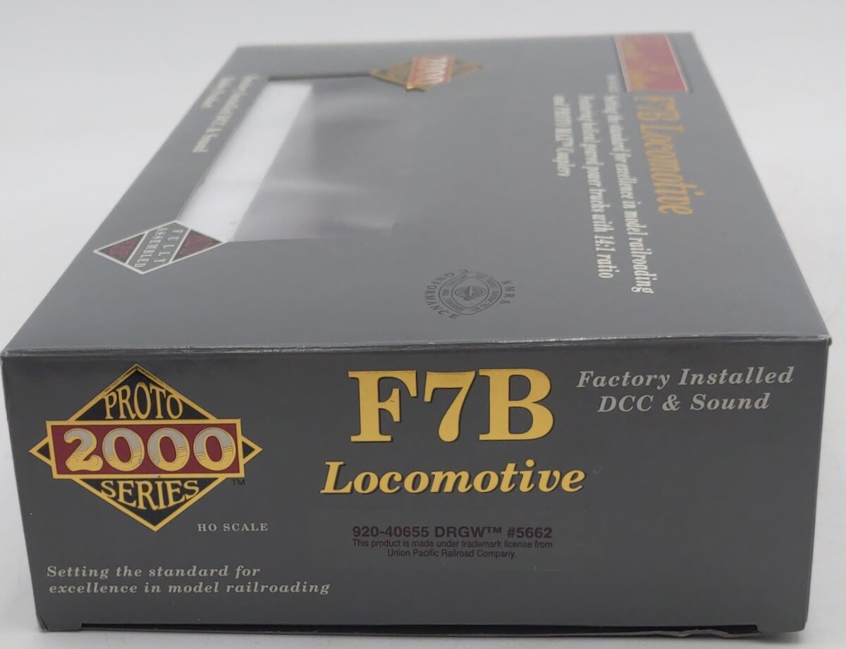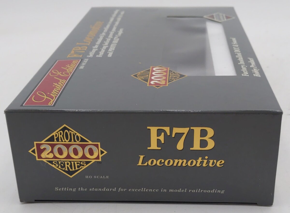 Here is an Proto 2000 HO F7B 920-40655 Diesel Locomotive. This item features plastic construction with plastic trucks, knuckle couplers and metal wheels.
