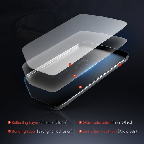 Note:  Please confirm photos of this mirror glass and the above specifications to match those of your existing factory mirror before making a purchase.