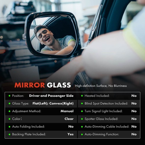 Note-2:  It fits the model on Driver & Passenger Side, Color: Clear, with Backing Plate, with Manual Glass Adjust