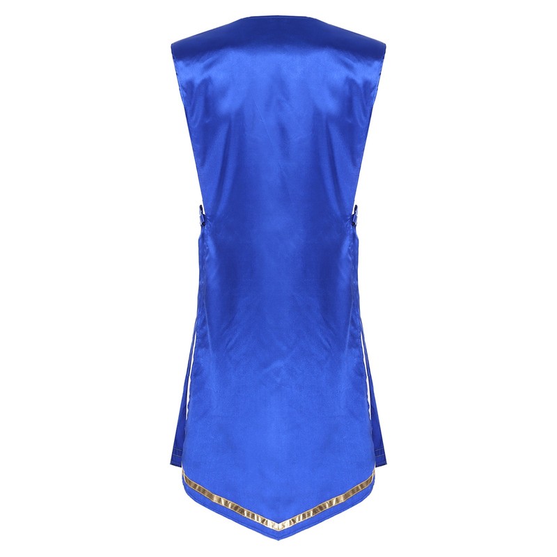 The satiny texture of the vest is smooth and shiny, enhancing the overall elegance and making it eye-catching.