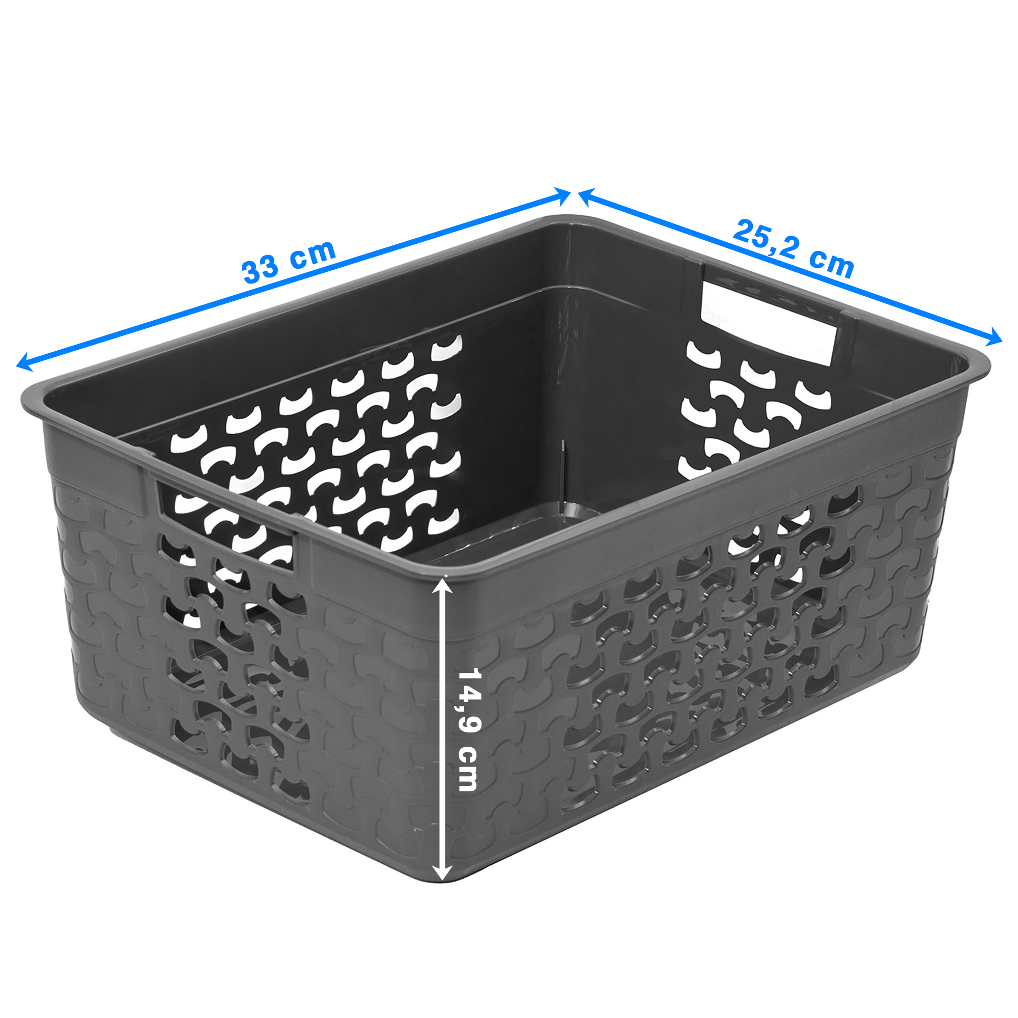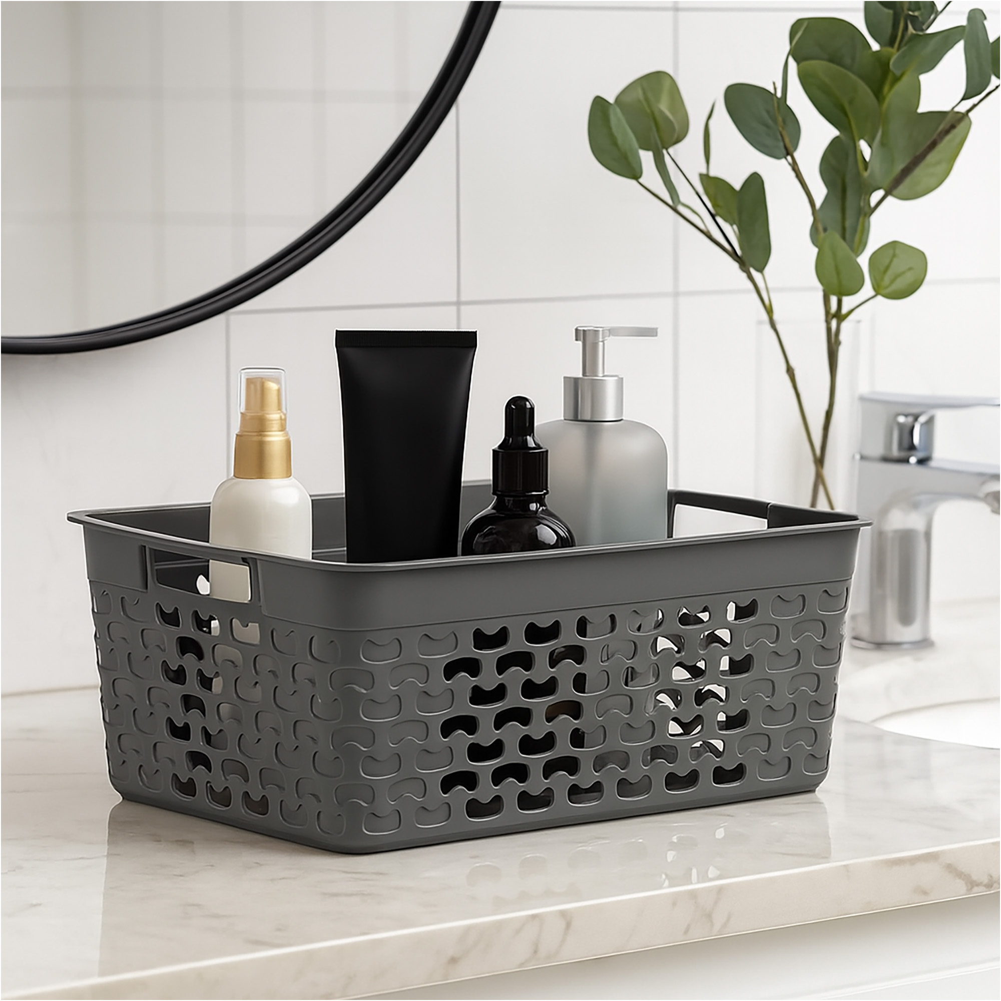 Un panier universel pour salle de bain, chambre d'enfant, armoire ou cuisine. Les cosmétiques, les détergents, le linge, les accessoires de salle de bain ou les articles scolaires y trouvent une place de choix. Le design ajouré est non seulement beau, mais laisse le contenu respirer.