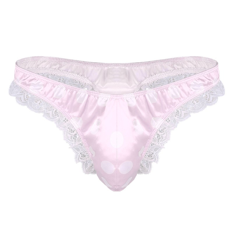 Designed with elastic spaghetti waistband, T-back and buttock showing, bulge mesh pouch, which is a fancy underwear.