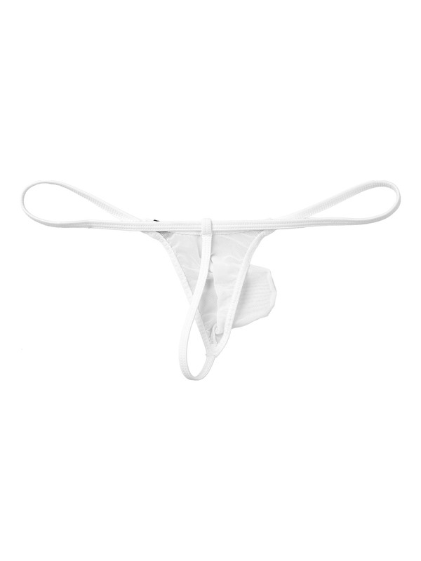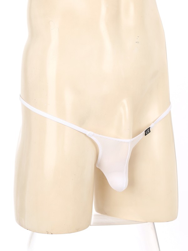 See-through mesh pouch keeps your intimate areas dry, cool and comfy all day. This G-string shows your strong masculine contour.