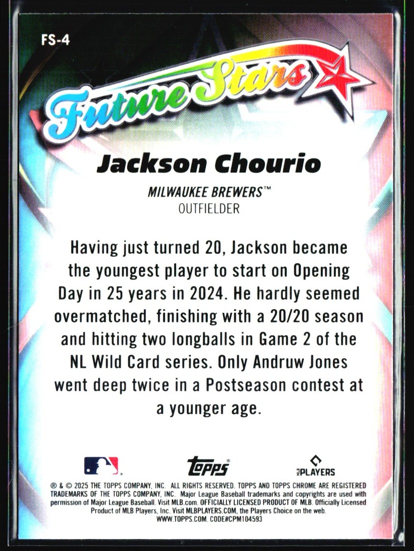 2025 Topps Chrome Future Stars Jackson Chourio Milwaukee Brewers #FS-4