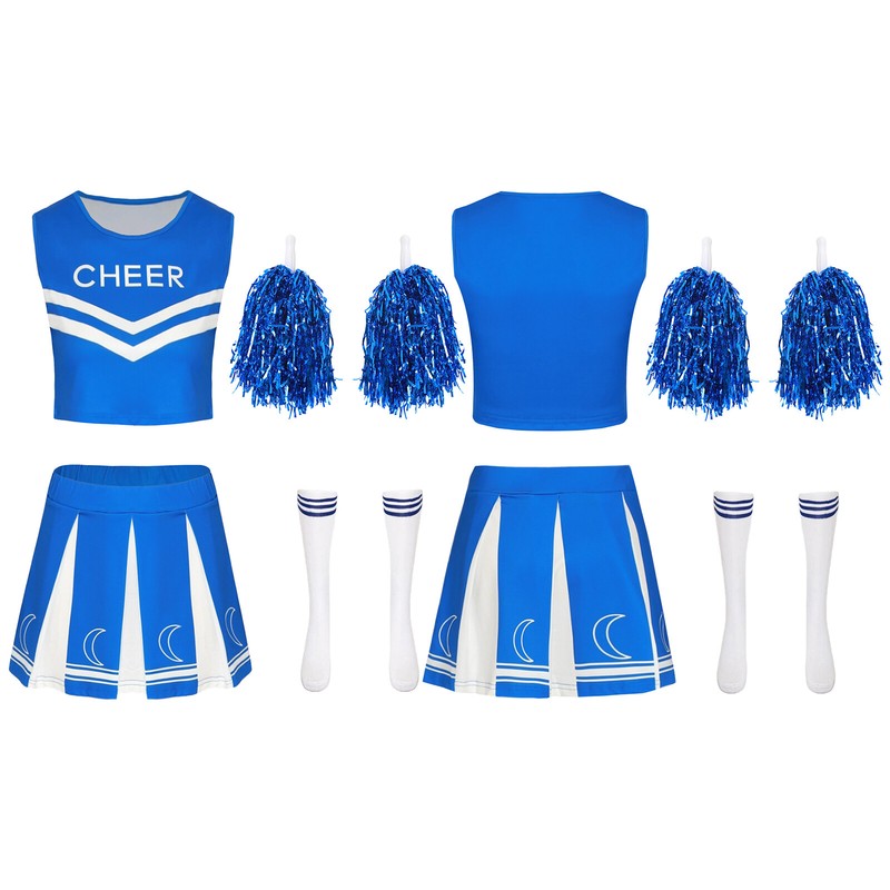 The included socks and hand-held hand flowers complete the cheerleading look, making it a full-fledged outfit ready for any event.