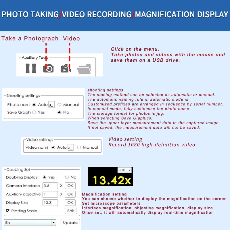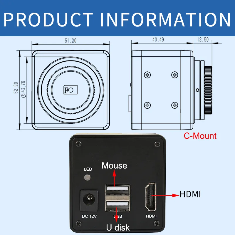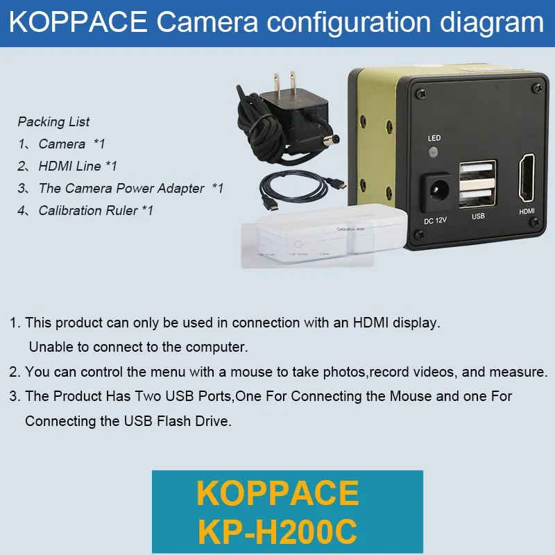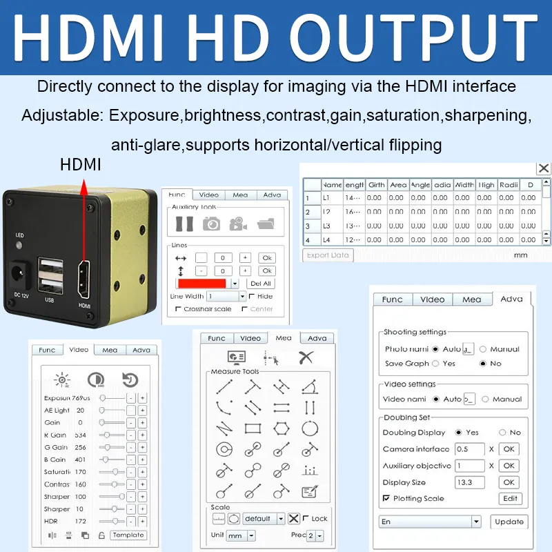 | Note | 1. This product can only be used in connection with an HDMI display.Unable to connect to the computer. 2. You can control the menu with a mouse to take photos,record videos, and measure. |