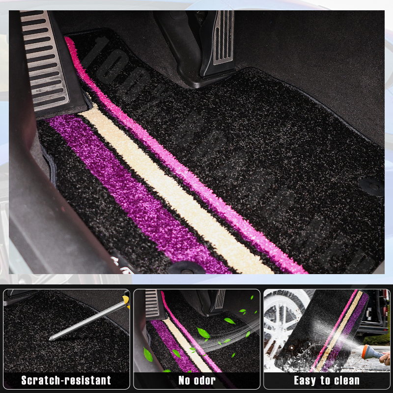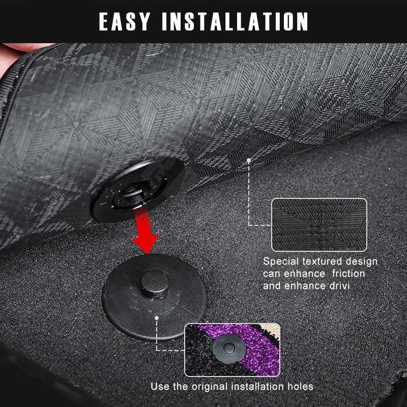 The mats are made from PVC material and have a non-slip underside to keep the mats securely mounted on the car; the special surface pattern not only enhances the look of the interior, but also improves safety!