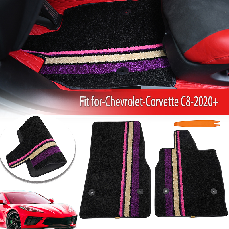 This floor mat is compatible with the Corvette C8 Stingray 2020-2024 (for Corvette C8 Stingray Coupe Convertible/HTC and Z06/Eray 2020-2024, Protect your C8's interior from water, debris, and wear and tear with these C8 carpet floor mats. These mats provide an extra layer of protection against dust, water, and salt, while also preventing future wear and tear on your vehicle's carpeting.