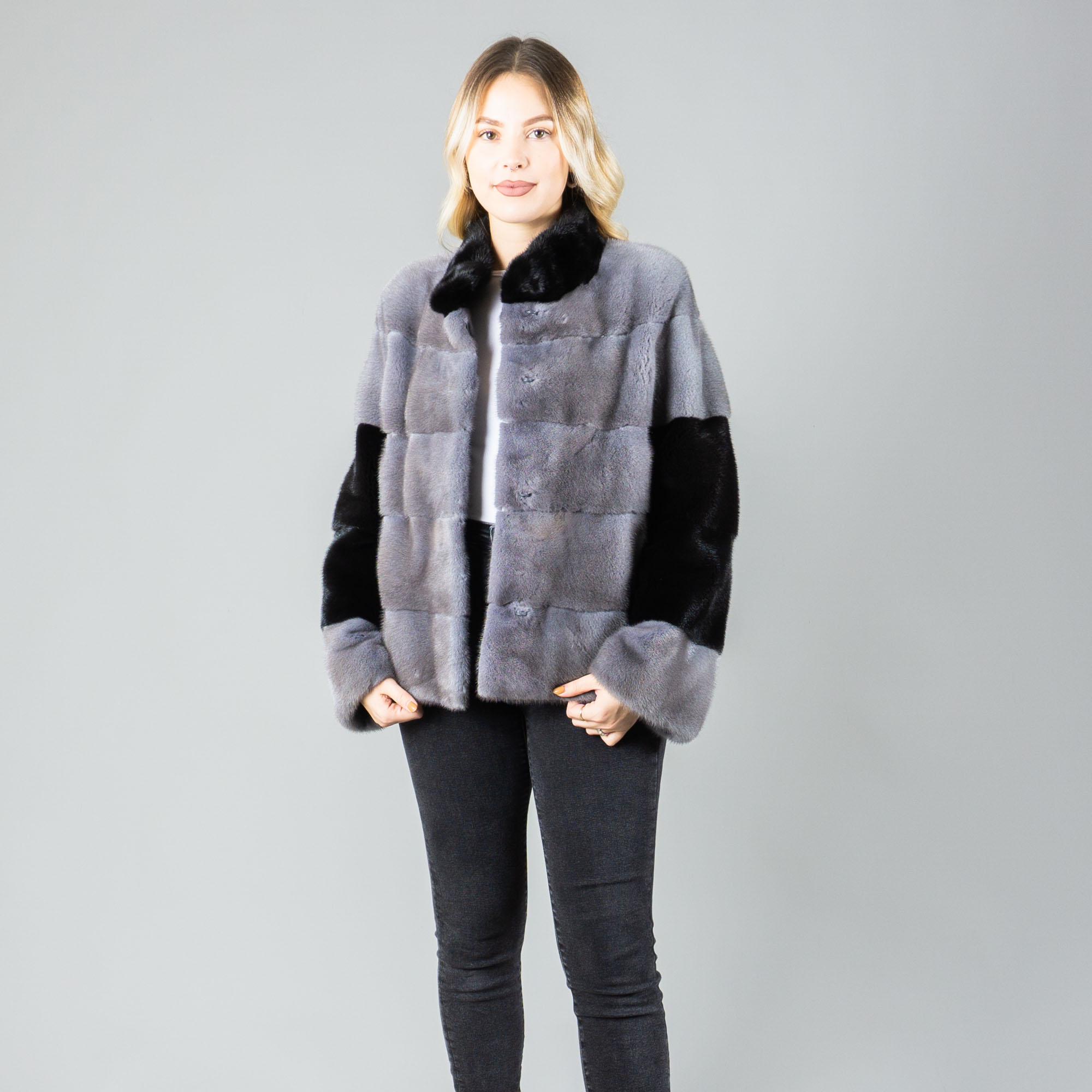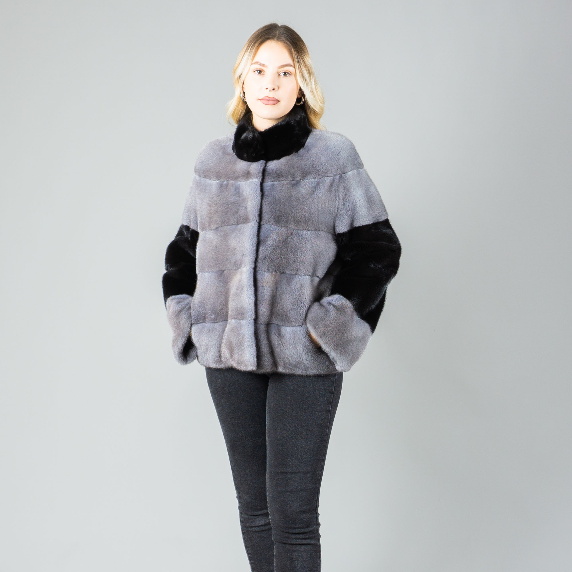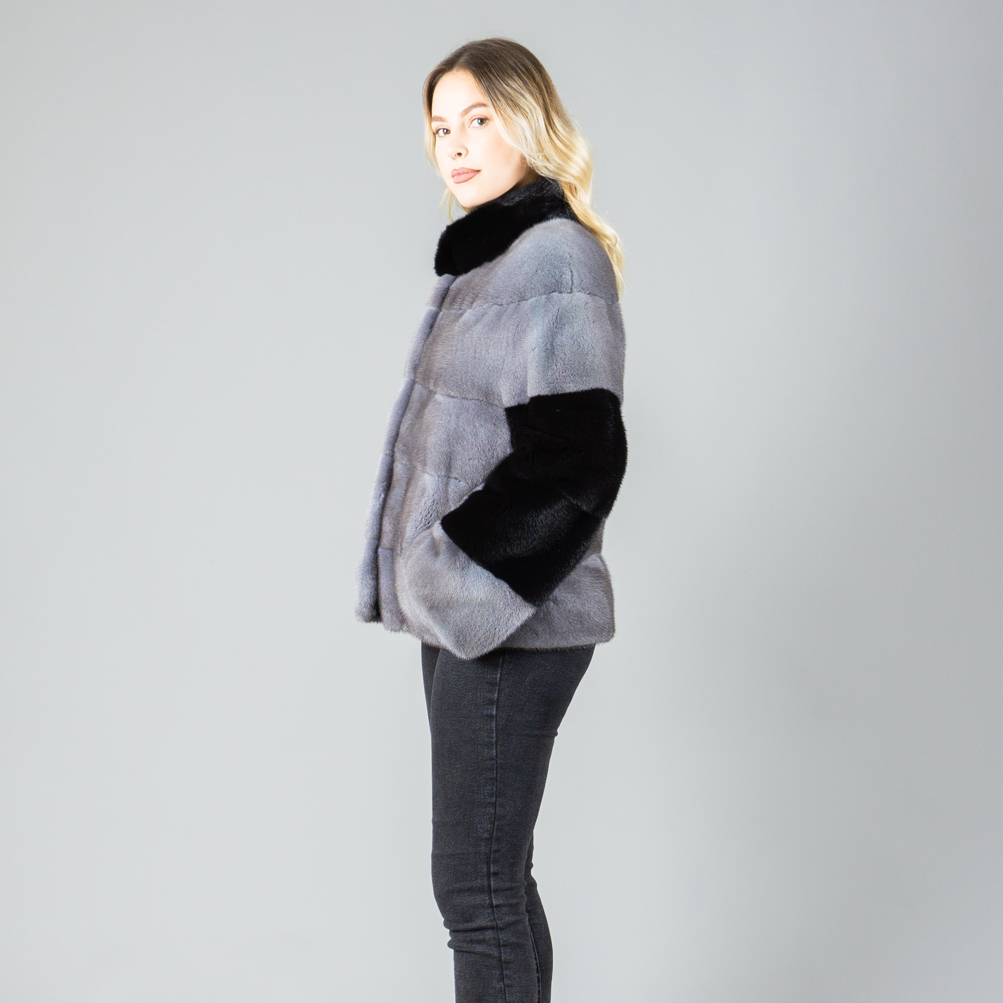 Luxury Women Genuine Mink Fur Coats Standing Collar Short Mink Fur Winter Jacket