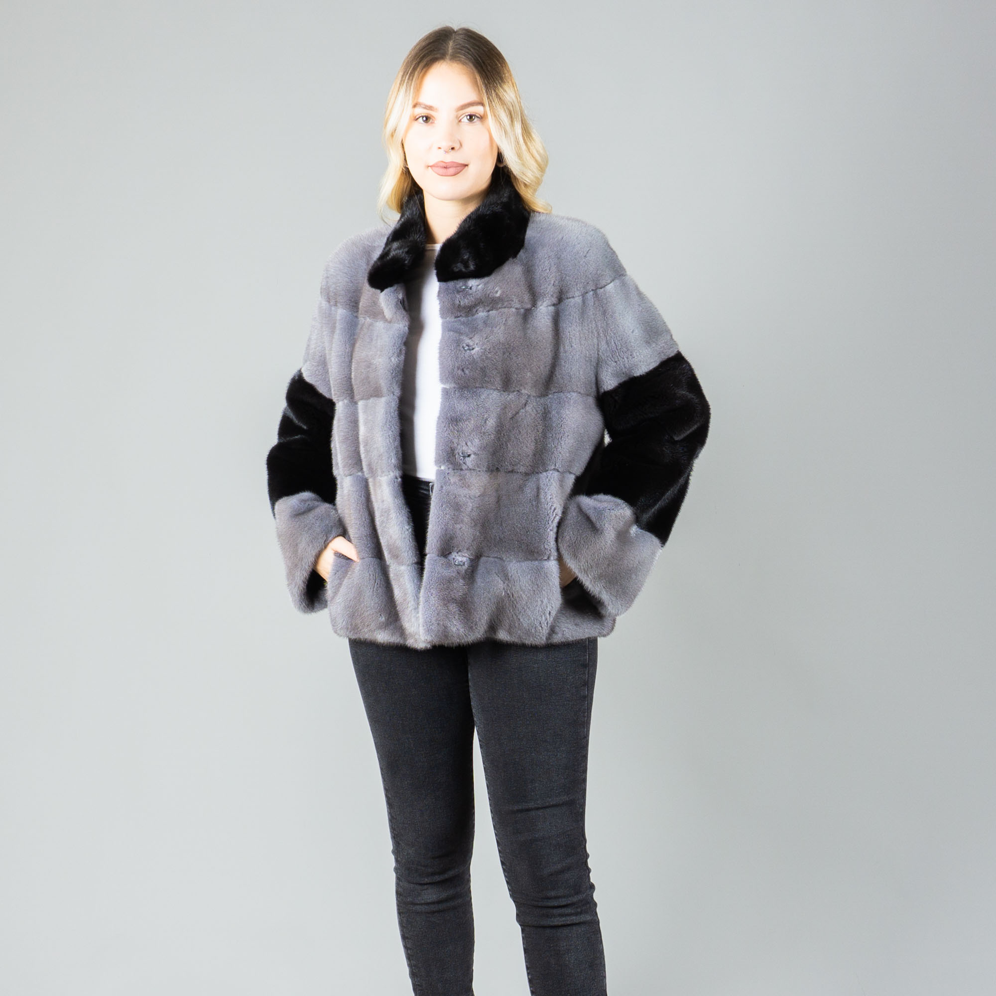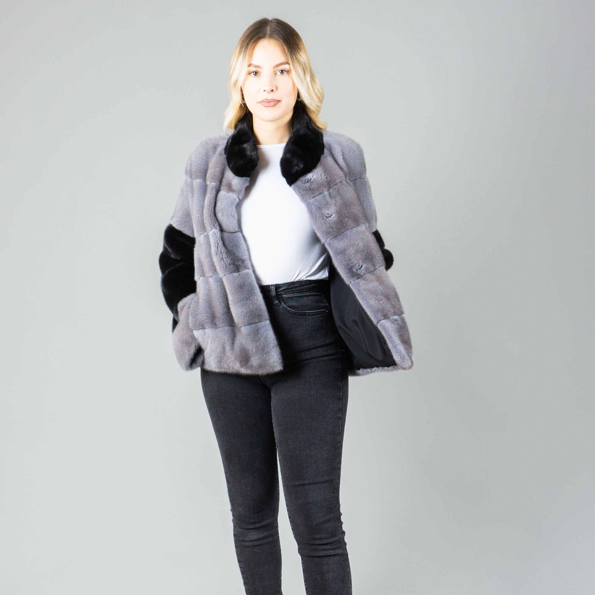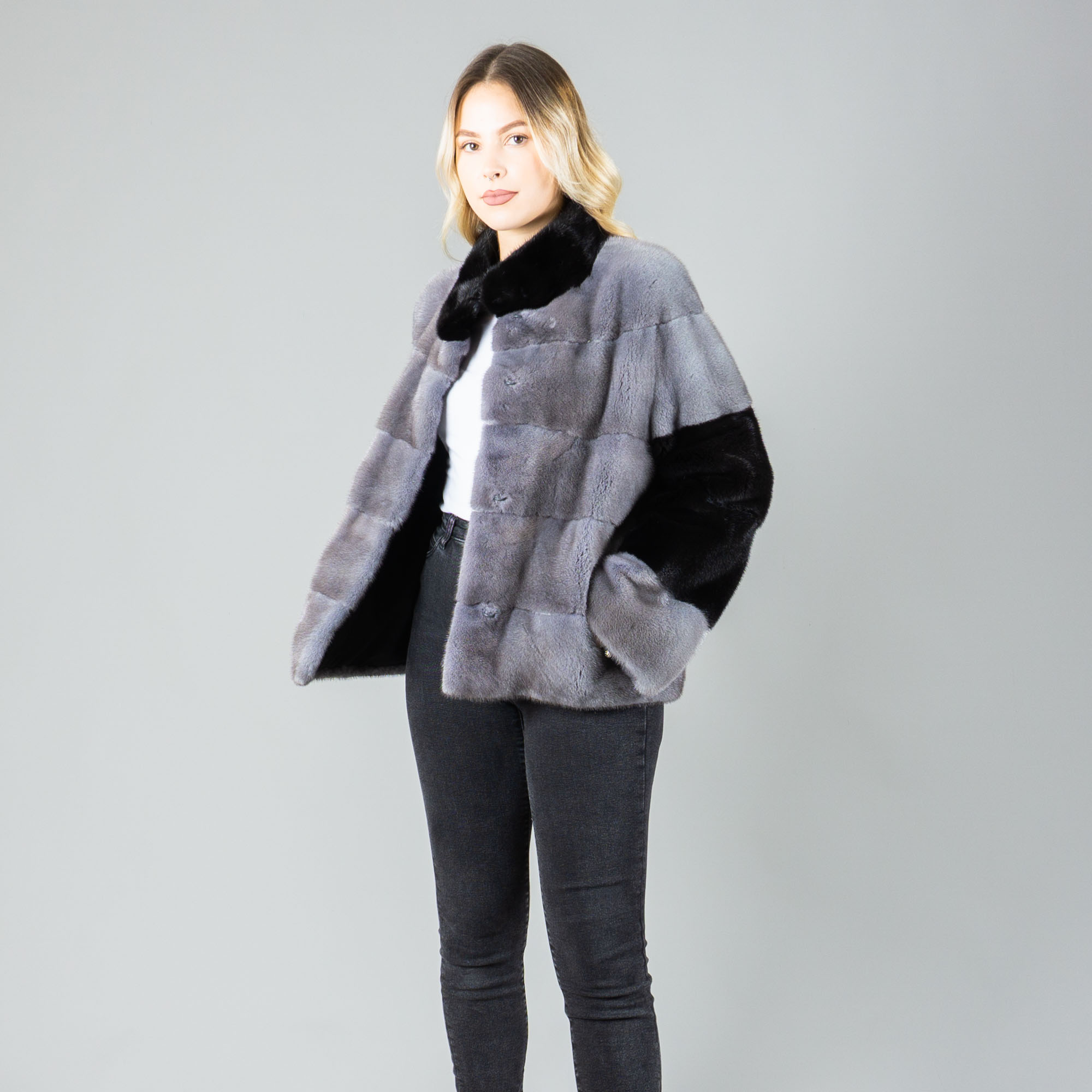 Luxury Women Genuine Mink Fur Coats Standing Collar Short Mink Fur Winter Jacket
