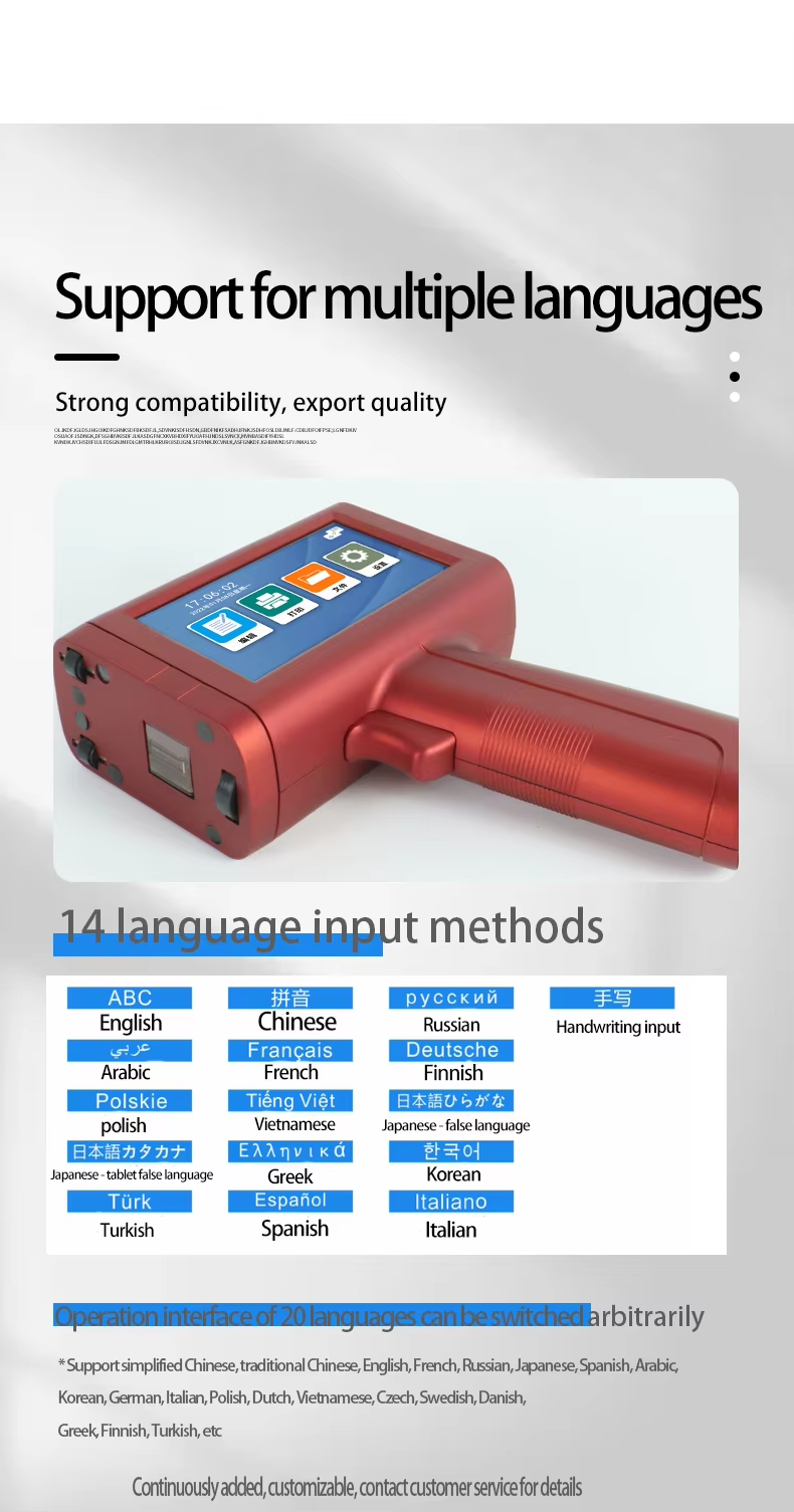 Japanese/Italian/Spanish/Bengali/Dutch/Portuguese/German/Greek and other languages;We can design your brand logo to customize the machine
