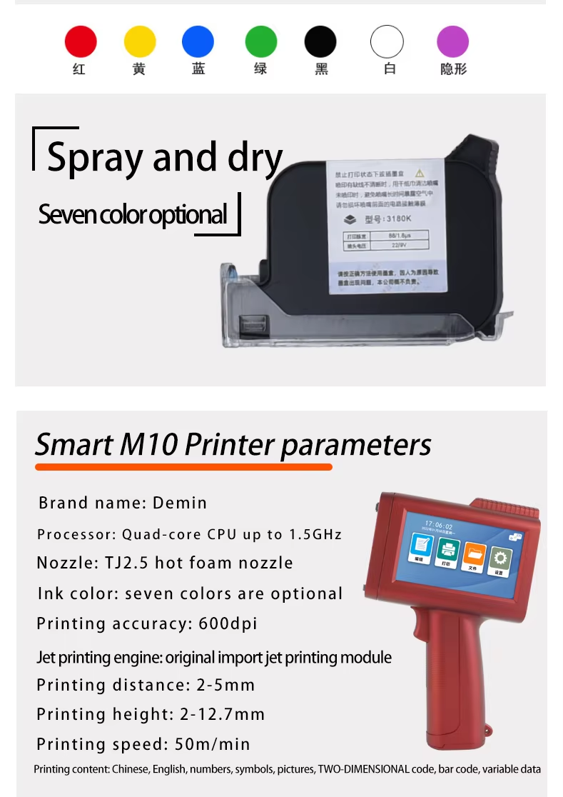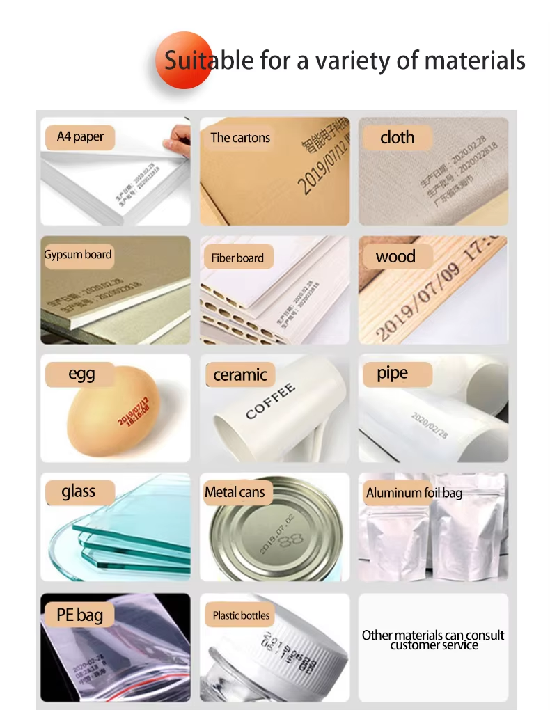 A:You can print date, text, logo, variable data, batch number, QR code, serial number and other content. Red, yellow, blue, green, black, white and other colors are available.
