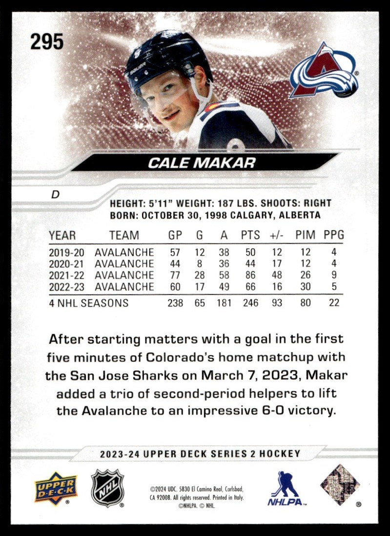 2023-24 Upper Deck Cale Makar Colorado Avalanche #295