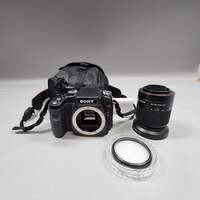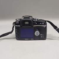 Sony Alpha DLSR-A100 10.2MP Digital SLR DSLR Camera Items included in this sale: Sony Alpha DLSR-A100 10.2MP Digital SLR DSLR Camera 1x Sony Battery Sony Charger Sony Neck/Shoulder Strap Sony Cap for Camera Body Sony Cyber-Shot Camera Bag 1x Sony lens MC Protector 58mm Sony 18-70mm f/3.5-5.6 a (alpha) Mount Digital SLR Standard Zoom Lens *Please note, if it is not listed it is not included - such as power cables or other accessories. Specifications: Collection Digital Camera Sub-Collection Sony Digital Camera Brand Sony Model Alpha DLSR-A100 Series Sony Alpha Shutter Count 30–1/4000 sec Megapixel 10.2MP Video Recording N/A Color Black Type Digital SLR DSLR Camera Release Year 2006 Mount Type A-Mount Condition Good UPC 027242694132 Serial# 707022 Cosmetic condition: The camera body is in good cosmetic condition with some minimal wear. The LCD and mirror are in good condition with no major wear, scratches or scuffs. Please view our close up photos, as these are taken of the actual item being offered for sale. Functionality condition: This camera has been tested and is fully functional.