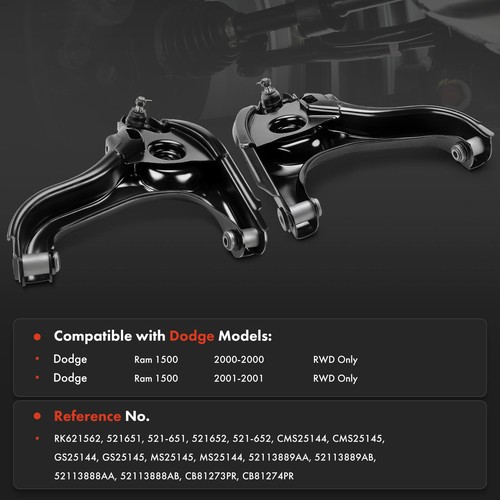 2x Control Arm & Ball Joint Assy for Dodge Ram 1500 2000 2001 RWD Front Lower