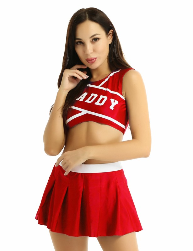 Women ladies charming cheerleader cosplay costume uniform set, pull on closure.