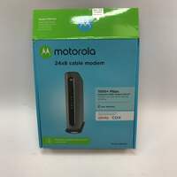 Motorola 24x8 Cable Modem MB7621-30 w/ Original Box, No Ethernet or Power Cable Items included in this sale: Motorola 24x8 Cable Modem MB7621-30 w Original Box No Ethernet or Power CableOriginal Box *Please note, if it is not listed it is not included - such as power cables or other accessories. Specifications: Collection General/Other Brand Motorola Model 24x8 Cable Modem MB7621-30 MPN N/A Type N/A Condition Fair MFG Warranty? No UPC 855631006347 Serial# 1300-MB7621-30-0885 Cosmetic condition: This device is used in fair condition. There are many visible scratches and scuffs from everyday use. Please view our close up photos, as these are taken of the actual item being offered for sale. Functionality condition: This device is in fully working, used condition. It has been tested to ensure all aspects are working as they should.