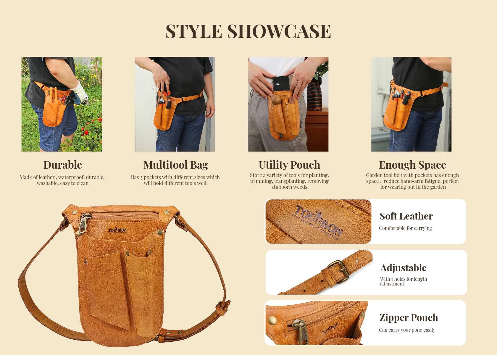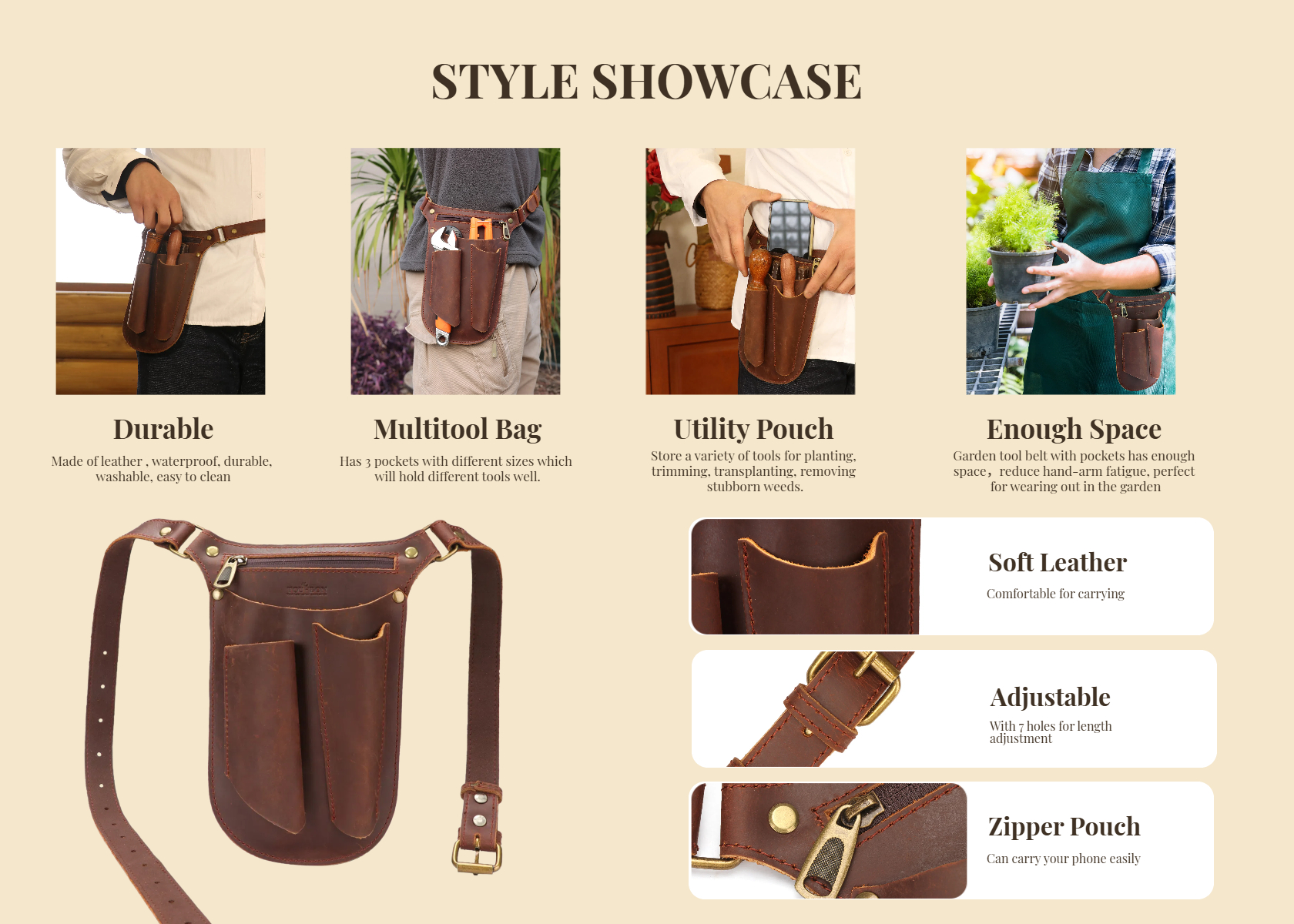 | Package Contents: 1* Leather Tools Holder Gardening Belt Pouch(tools not included) |