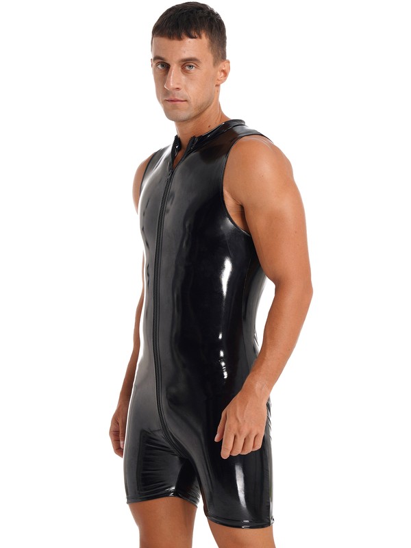 This glossy bodysuit perfectly shows your arm muscle and nice figure.