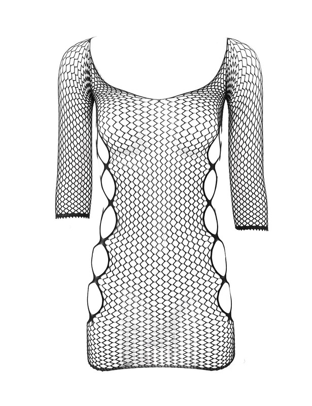 Women’s one-piece erotic hollow out fishnet bodystockings lingerie mini dress, one size fits most.