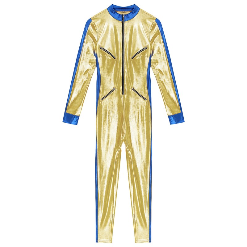 Adopted metallic shiny fabric and contrast color echo the theme elements of galaxy space. Unitard enhances your hourglass figure.
