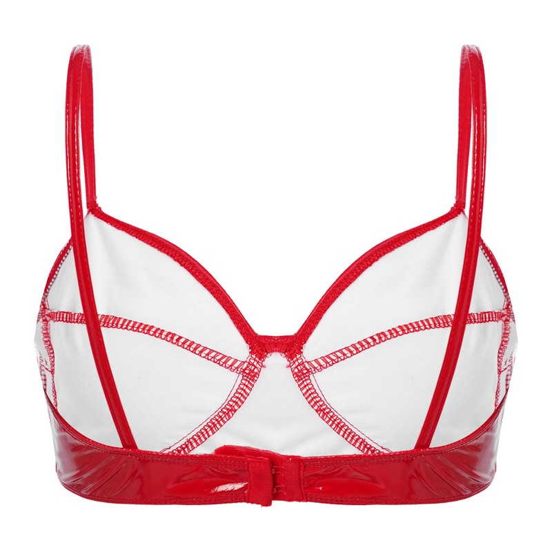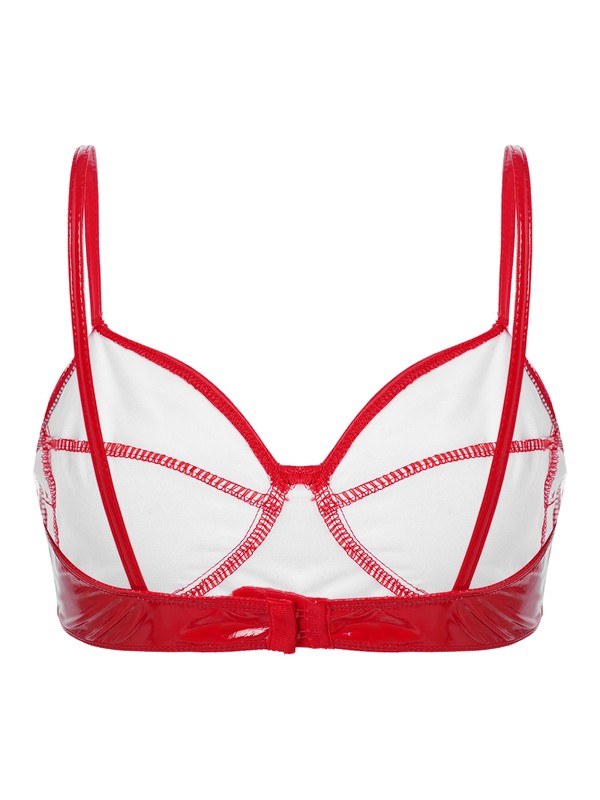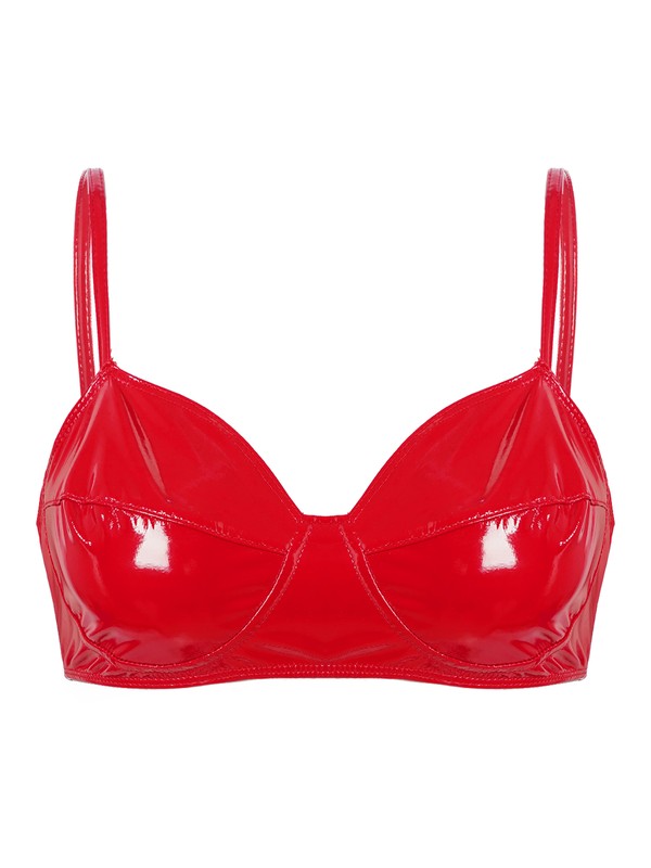 UK Womens Shiny Metallic PVC Leather Lingeries Wire-free Bra Top Vest Clubwear