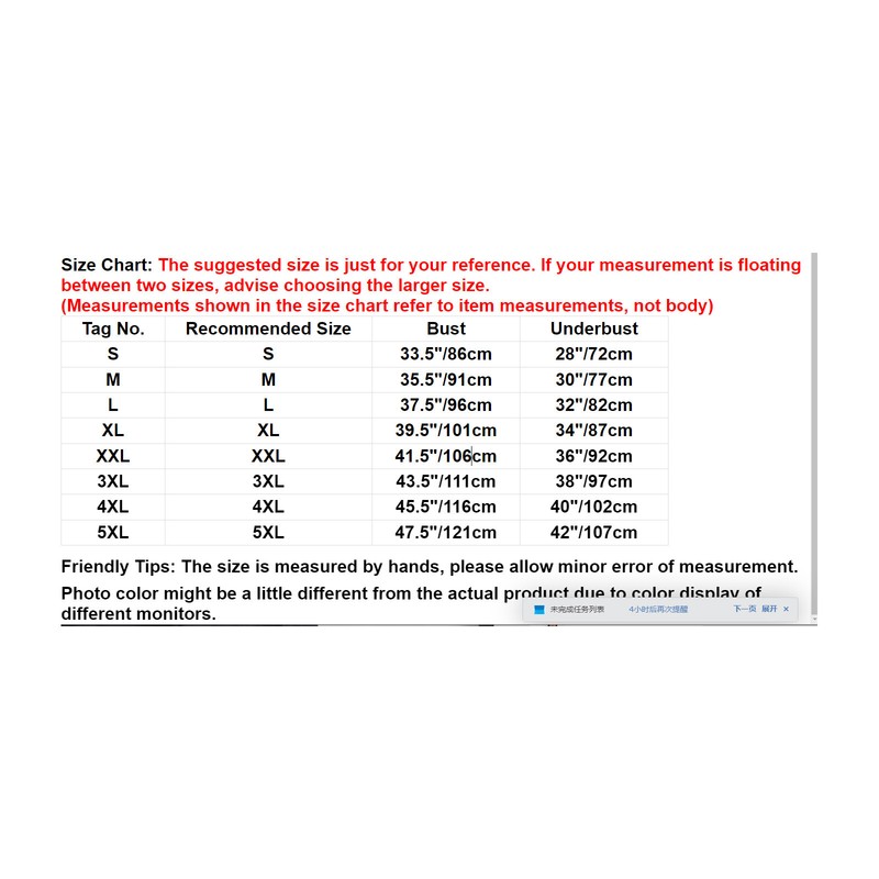 | Tag No. | Recommended Size | Side Length | Bust | Underbust |