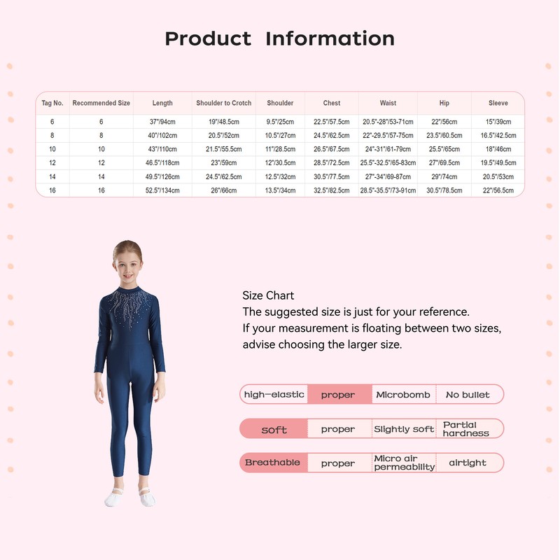 The long sleeve gymnastics jumpsuit for girls ensure total movement and flexibility when leaping, dancing or tumbling.