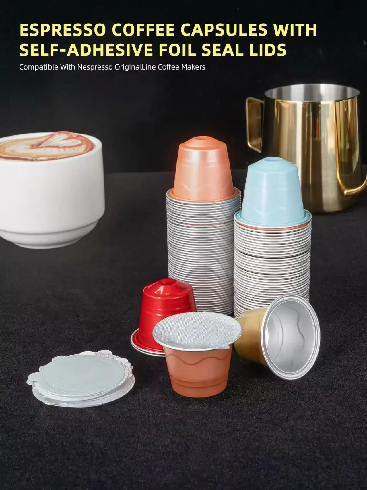 2.What You Will Receive: The package including 100pcs empty aluminum foil capsules pods, 100* aluminum foil sticker lids'