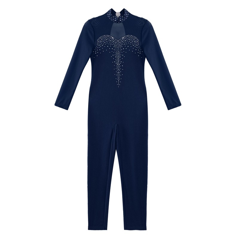 Long sleeve dance jumpsuit for girls, decorated with shiny rhinestones, sparkles under the light to brighten up any performance.