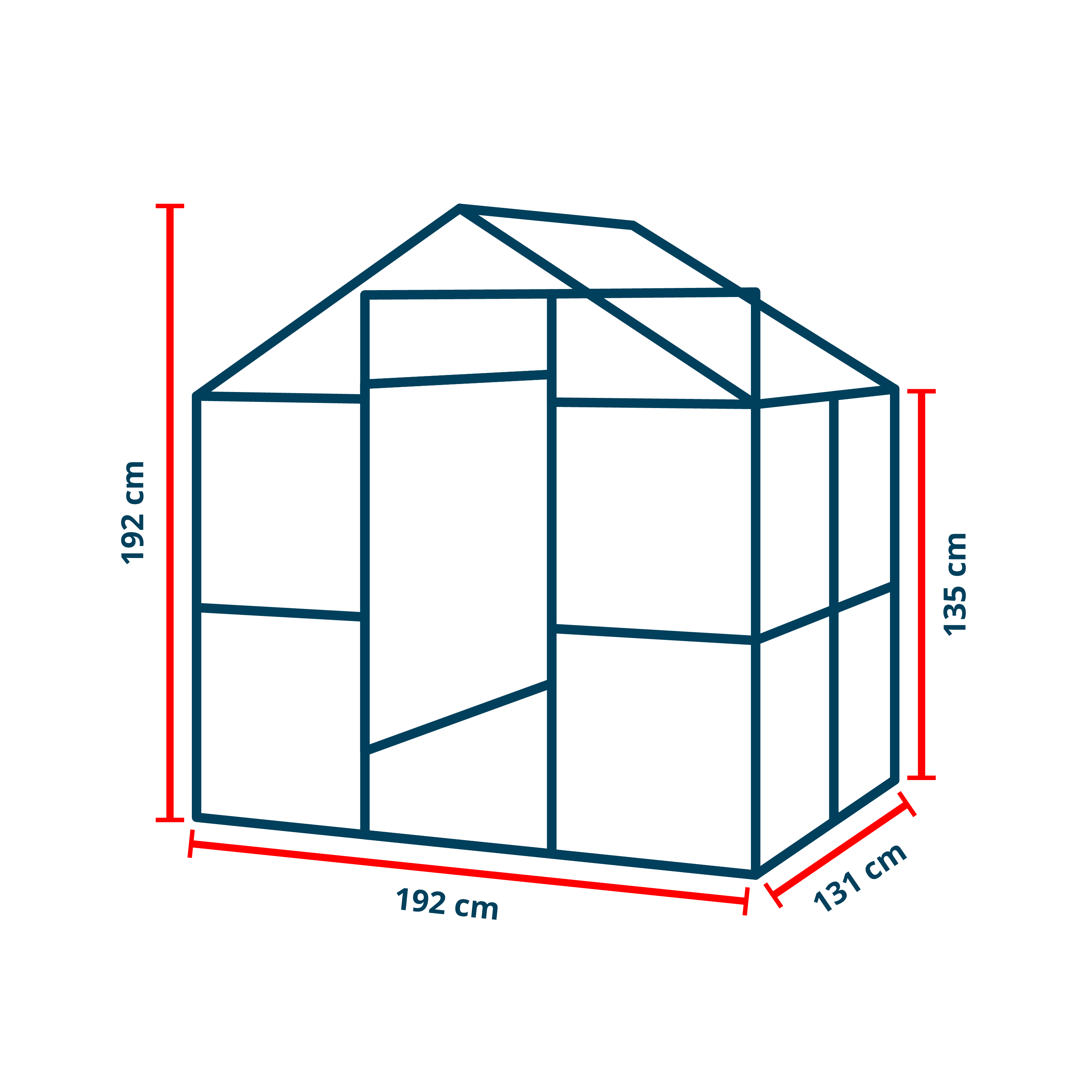 GERÄUMIG & PRAKTISCH: Die Höhe von 192 cm (Seitenhöhe 135 cm) bietet genug Platz für Ihre Pflanzen. Die Einfachschiebetür (ca. 60x165 cm) ist oben und unten auf Rollen gelagert und besonders leichtgängig