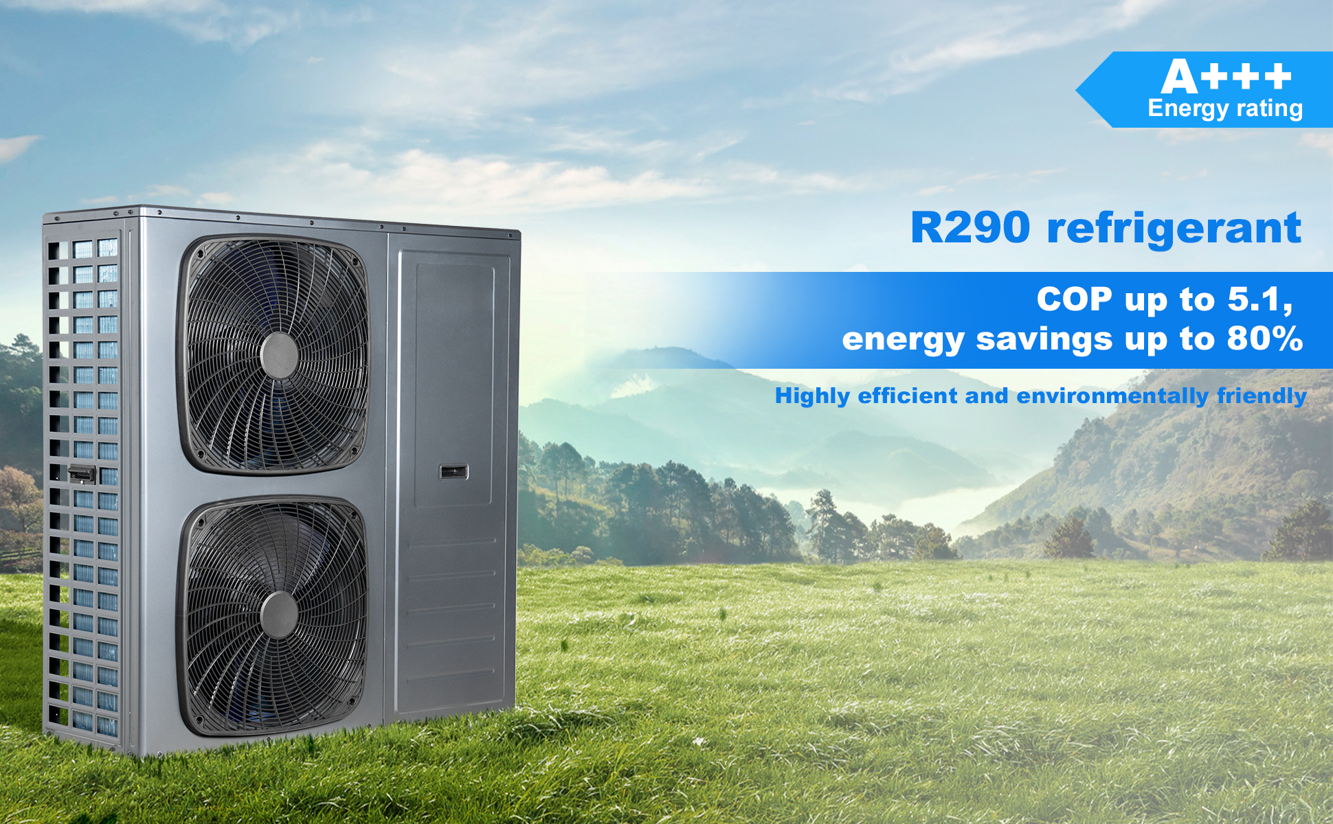 Unsere Wärmepumpe der Klasse A+++ (siehe europäische Gesetzgebung zur Energieeffizienz) tragen wesentlich zur Einschränkung der Umweltbelastung bei, wodurch erhebliche Energieeinsparungen und eine Senkung der Betriebskosten erzielt wird. Die Wärmepumpe verbraucht keine natürlichen Ressourcen wie Öl oder Gas, da sie kostenlose Umweltenergie (Luft) nutzt – sie benötigt lediglich Strom für den laufenden Betrieb.