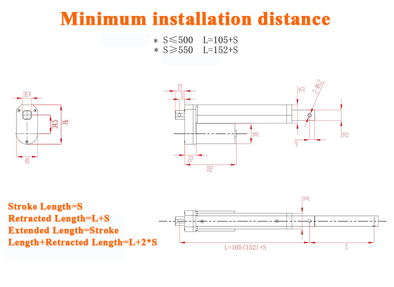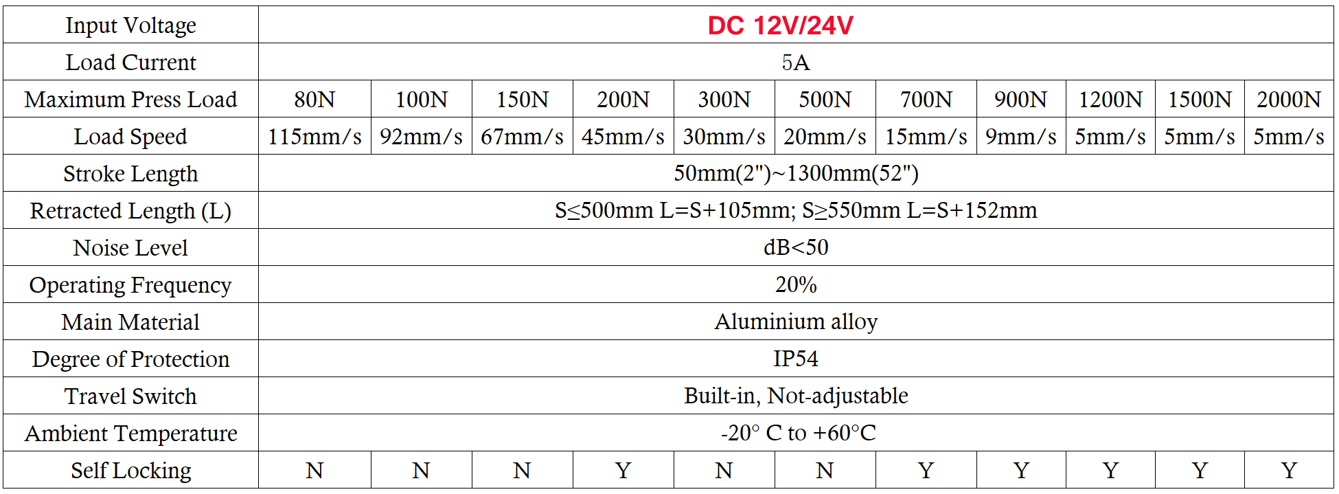 LEISTUNGSFÄHIG - Dieser Linearaktuator ist ein gutes Werkzeug, um den Hub relativ zu verlängern. Es kann eine Druck- oder Zugkraft von bis zu 200N (45 mm/s), 250N (30 mm/s), 450N (14mm/s), 700N (15 mm/s), 1200N (5 mm/s) 2000N (5 mm/s);