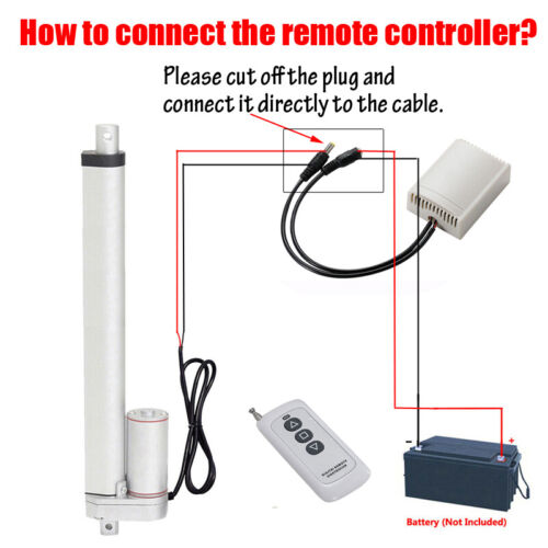 Die Linearantriebe werden durch Anlegen einer 12V Gleichspannung gesteuert. Verbinden Sie im Grunde die beiden Drähte mit einer 12 Volt Batterie;