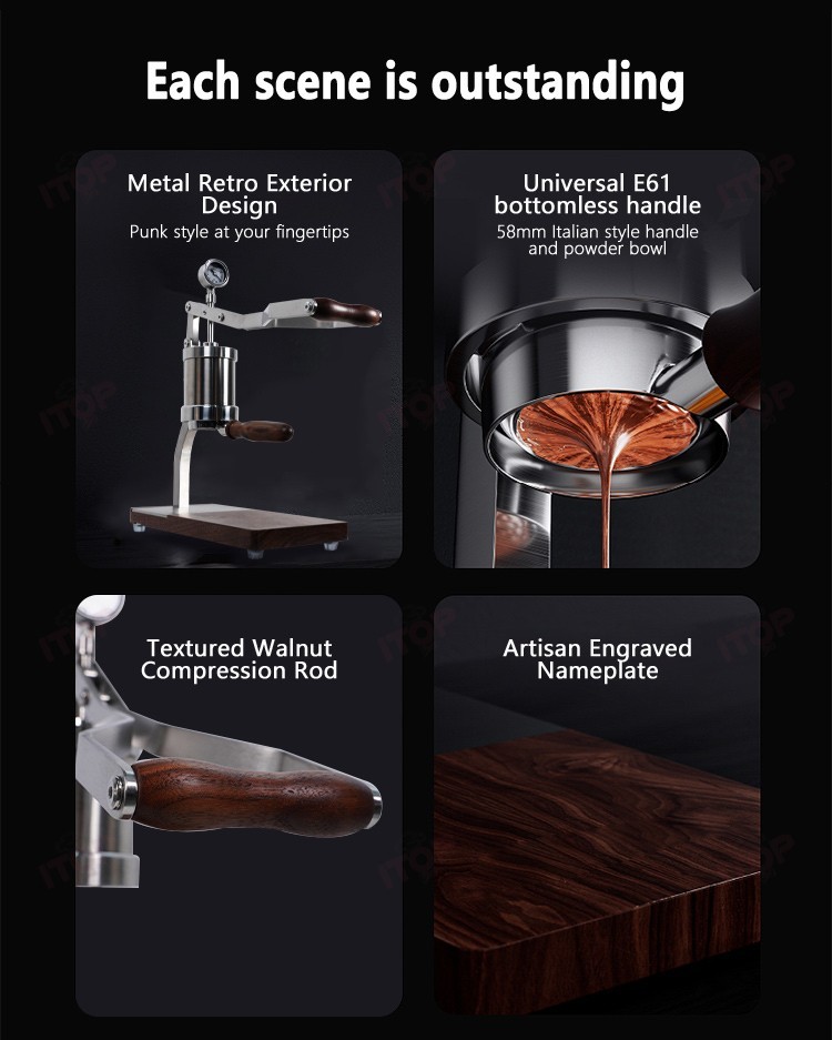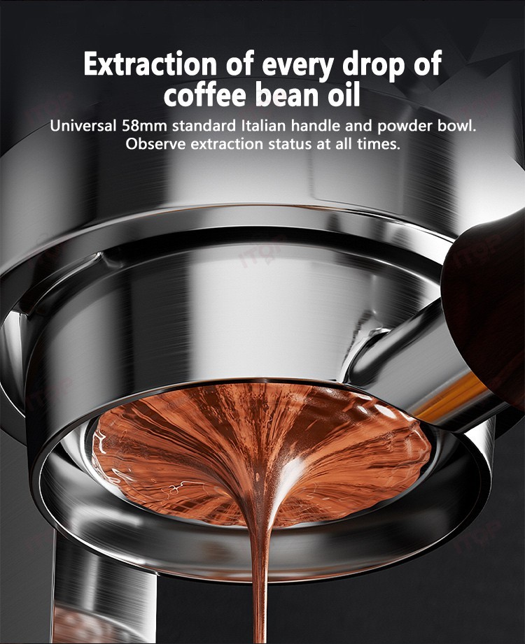 6. It features a universal E61 bottomless handle, and a 58mm standard Italian handle and powder bowl.