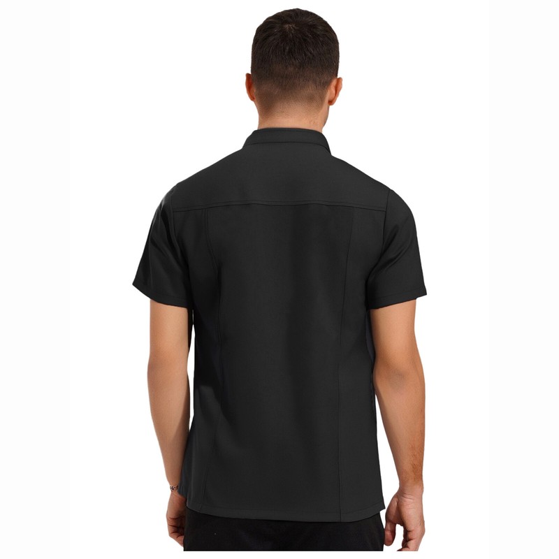 The stand collar design is both stylish and practical, providing protection and a professional look for chefs and kitchen staff.