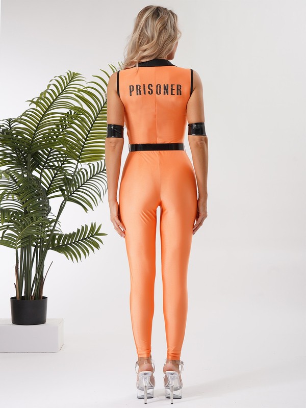 The adjustable faux leather belt and cuffs not only enhance the overall prison-style look but also can be adjusted to fit your body perfectly.