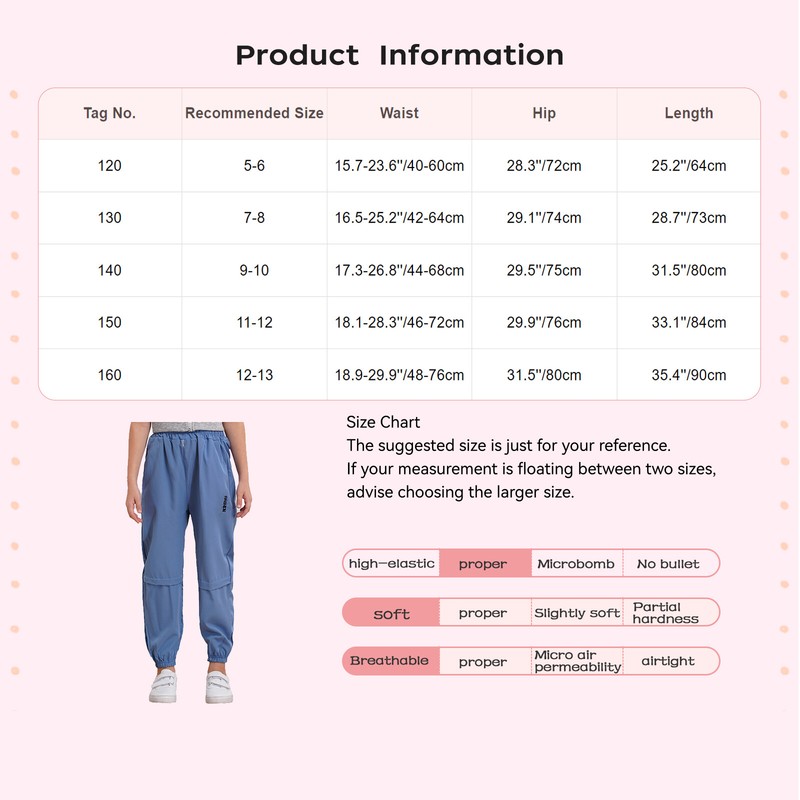 Pants is designed with elastic waistband and leg openings for easy to put on or take off.