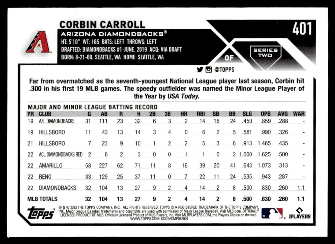 2023 Topps Corbin Carroll...//. Rookie Arizona Diamondbacks #401