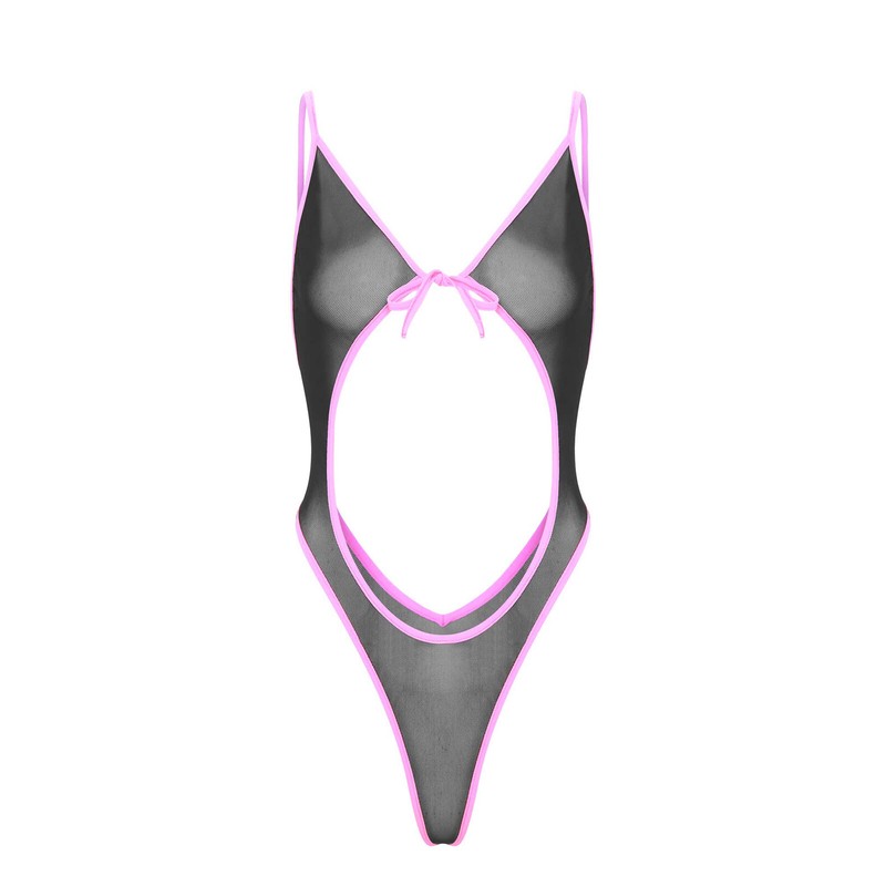 A linger bodysuit for women, is designed with v neck, sleeveless, front tie-up, hollow out, high-cut thong styled bottom.