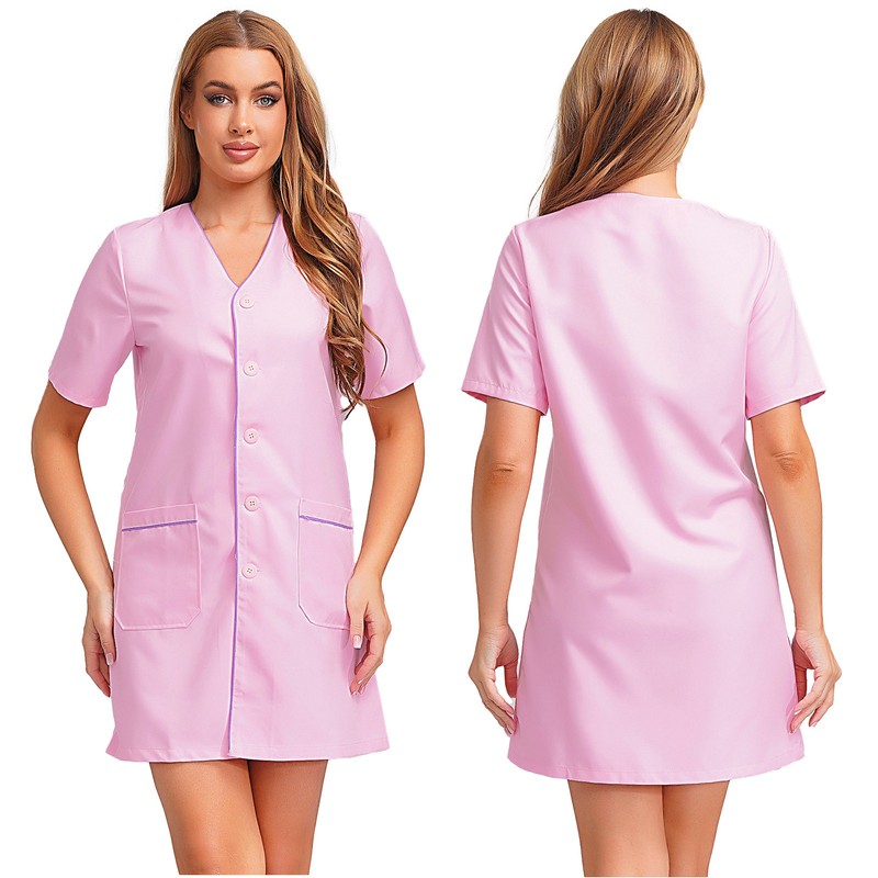 Short-sleeve style keeps you cool during work, which is a practical choice for beauticians or those in similar occupations who are often on the move.
