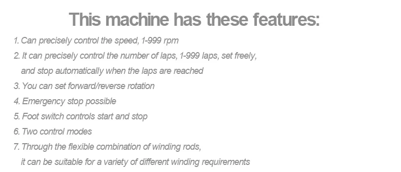 Winding Turns 1-999 turns adjustable, auto-stop upon reaching set count