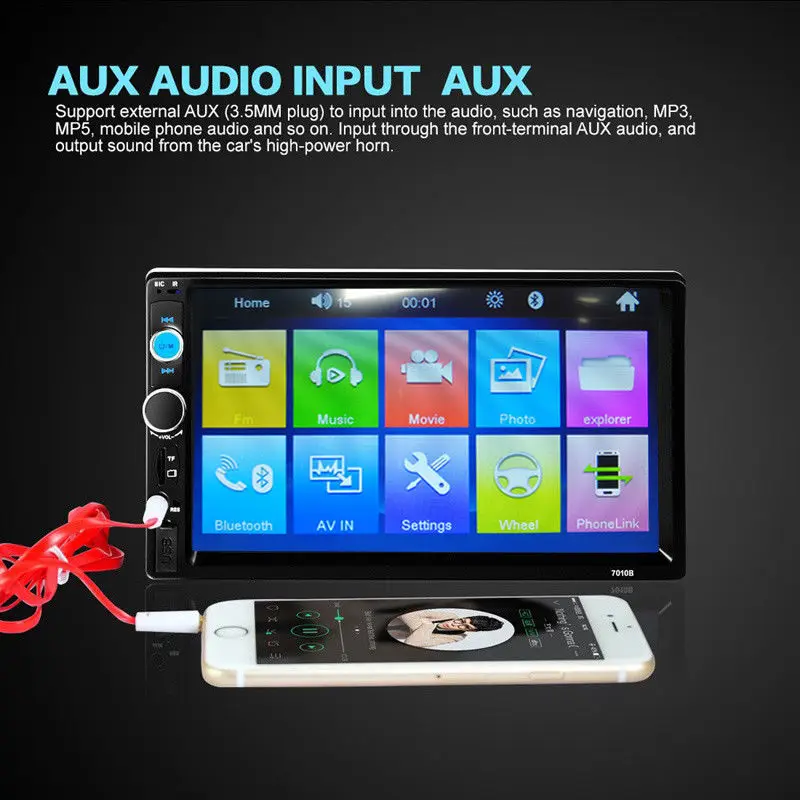 22.AUX audio input interface can be an external MP3, GPS, mobile phones, music players and other audio input.
