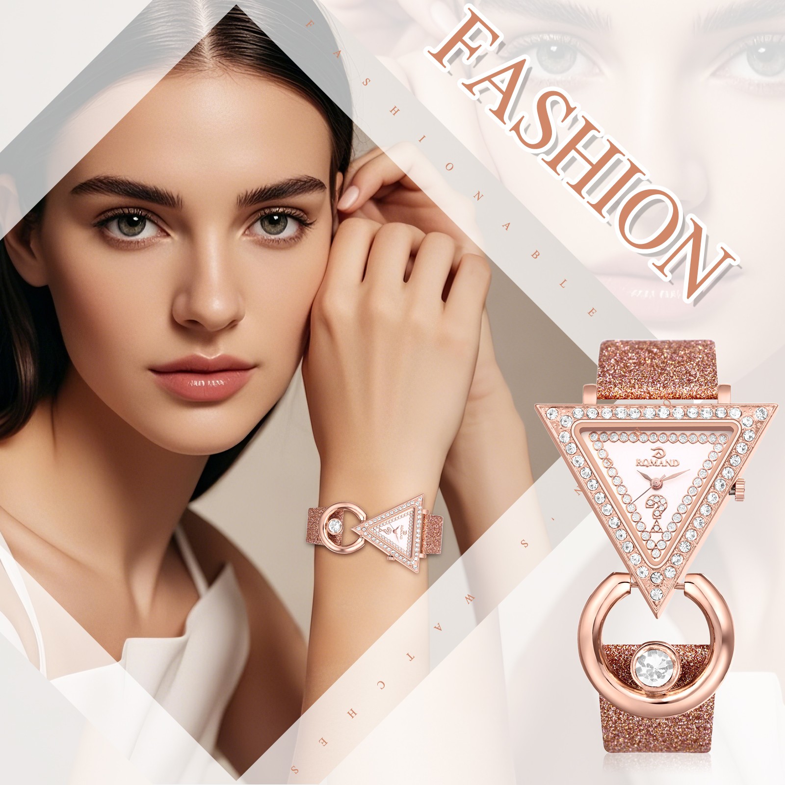 5. Luxurious and Fashionable Aesthetic: Combines shimmering rhinestones, a triangular case, and a rose gold finish to create a sophisticated and elegant watch, perfect for adding a touch of luxury and uniqueness to any look.