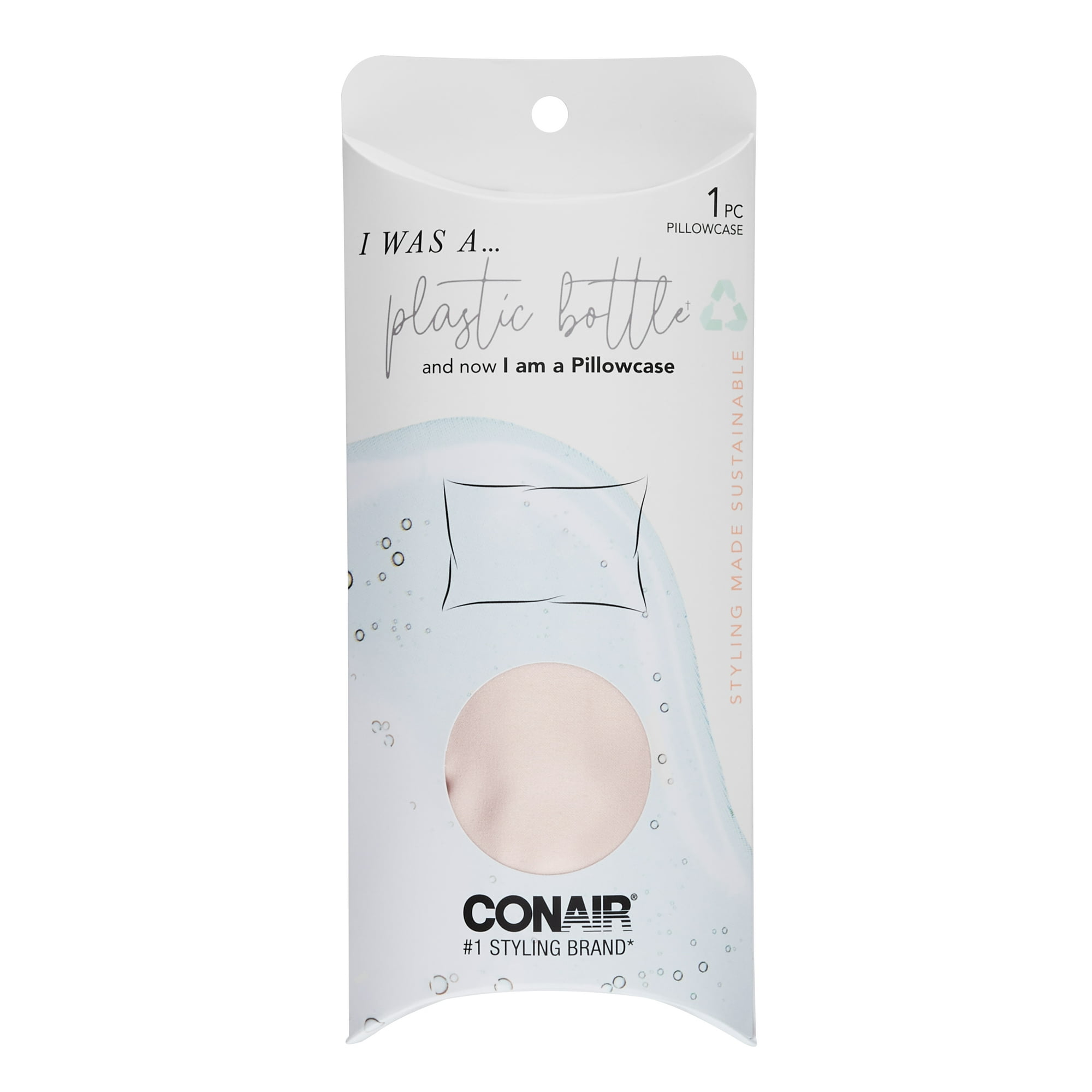 Protect your hair, and the planet every time you rest your head upon this satiny-smooth Consciously Minded pillowcase by Conair. Made from recycled plastic bottles, this pillowcase has a luxurious feel that lets you sleep in ultimate comfort and wake up each morning looking and feeling beautifully refreshed. Perfect for teens and adults. Friction-free fabric provides a sleek surface that’s gentle on hair, allowing it to slide and glide naturally as you move in your sleep, so you wake up tangle, frizz, and damage-free. The sleek fabric is also less absorbent than traditional cotton, allowing skin to retain its natural moisture and preventing overnight treatments from losing their effectiveness. Hair and skin tend to look brighter with fewer creases and less damage. Rest assured knowing that this friction-free pillow cover made from recycled plastic bottles does good for your hair, skin, and the Earth! Consciously Minded by Conair, Styling Made Sustainable.