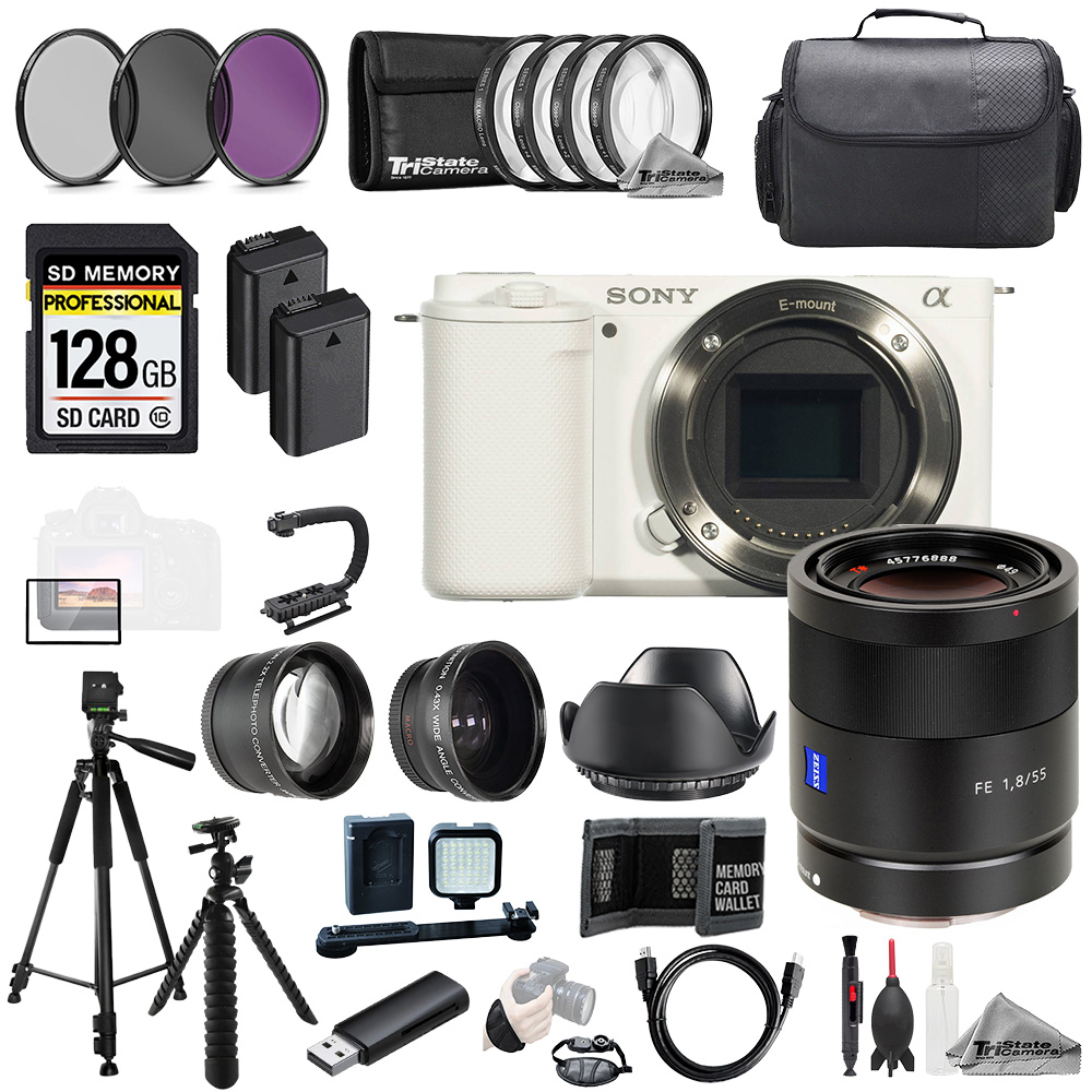 Sony ZV-E10 White Body + Sonnar T* FE 55mm f/1.8 ZA Lens+128GB+9PC Filtr MEGAKit