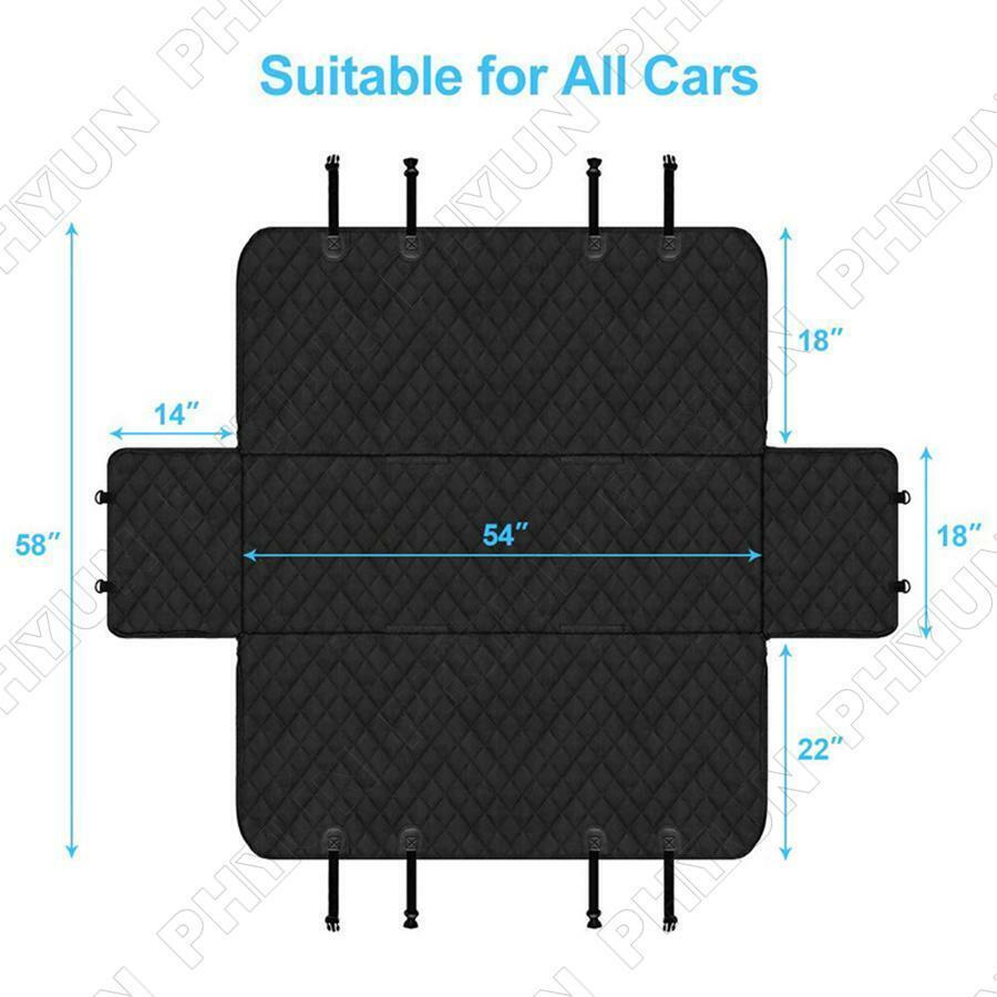 2. Very suitable-Our dog seat covers are specially designed, Adaptable to every car, Truck or SUV Back seat. Super convenient and less than 60 Fast installation in seconds,You are ready! Easy conversion from hammock to standard bench coverage and use as cargo coverage。Maximum opening size(54inchx 58inch)。3. EasilyClean materials –Our dog seat covers are made of super easy to clean materials! With high quality 600D Oxford waterproof cotton top layer and Oxford with waterproof coating 190D Refined from the middle layer, Your seat will remain clean no matter what.