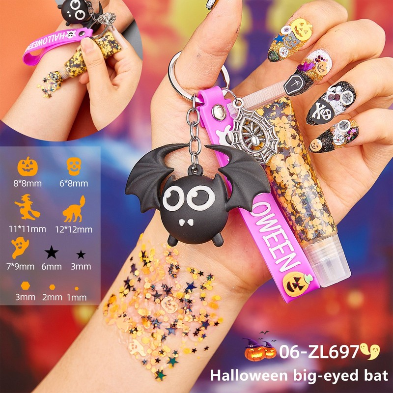 The key-chain features a Halloween theme, with popular designs like ghosts, big-eyed bats, and pumpkins.