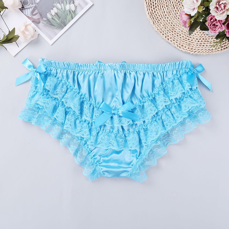 Comfy elastic waistband, ruffled frilly floral lace design, with cute bowknots.