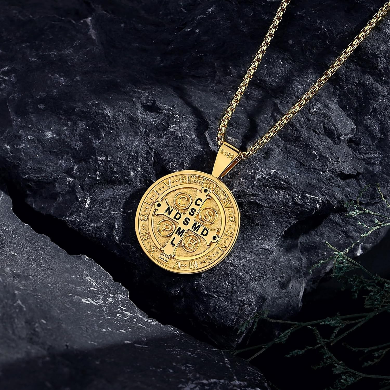 The medalla de san benito, one of the oldest and most revered medals in Christian tradition, symbolizes protection against evil. Saint Benedict, the patron saint of exorcism, is celebrated for his divine ability to discern and combat the tricks of demons. Known as the "devil-chasing medal," wearing this pendant serves as both a spiritual safeguard and a meaningful token.